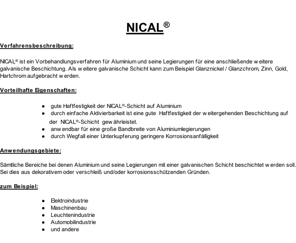 Nickel Nickel Nickel (glanz, halbglanz unt matt) Nickel (glanz, halbglanz, matt)